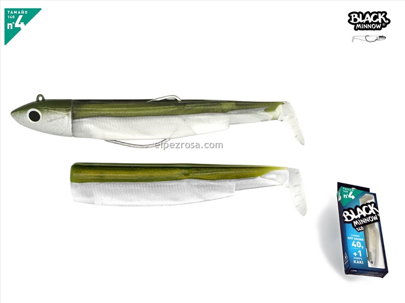 El Minnow 140 mm 40 g Khaki es un señuelo de vinilo articulado con cabeza plomada, diseñado para pescadores que buscan máxima efectividad en lances largos, aguas profundas y zonas de corriente. Su cuerpo articulado ofrece una natación realista que simula un pez pasto herido, aumentando su poder de atracción ante depredadores como la lubina, anjova, bacoreta, dentón o serviola.