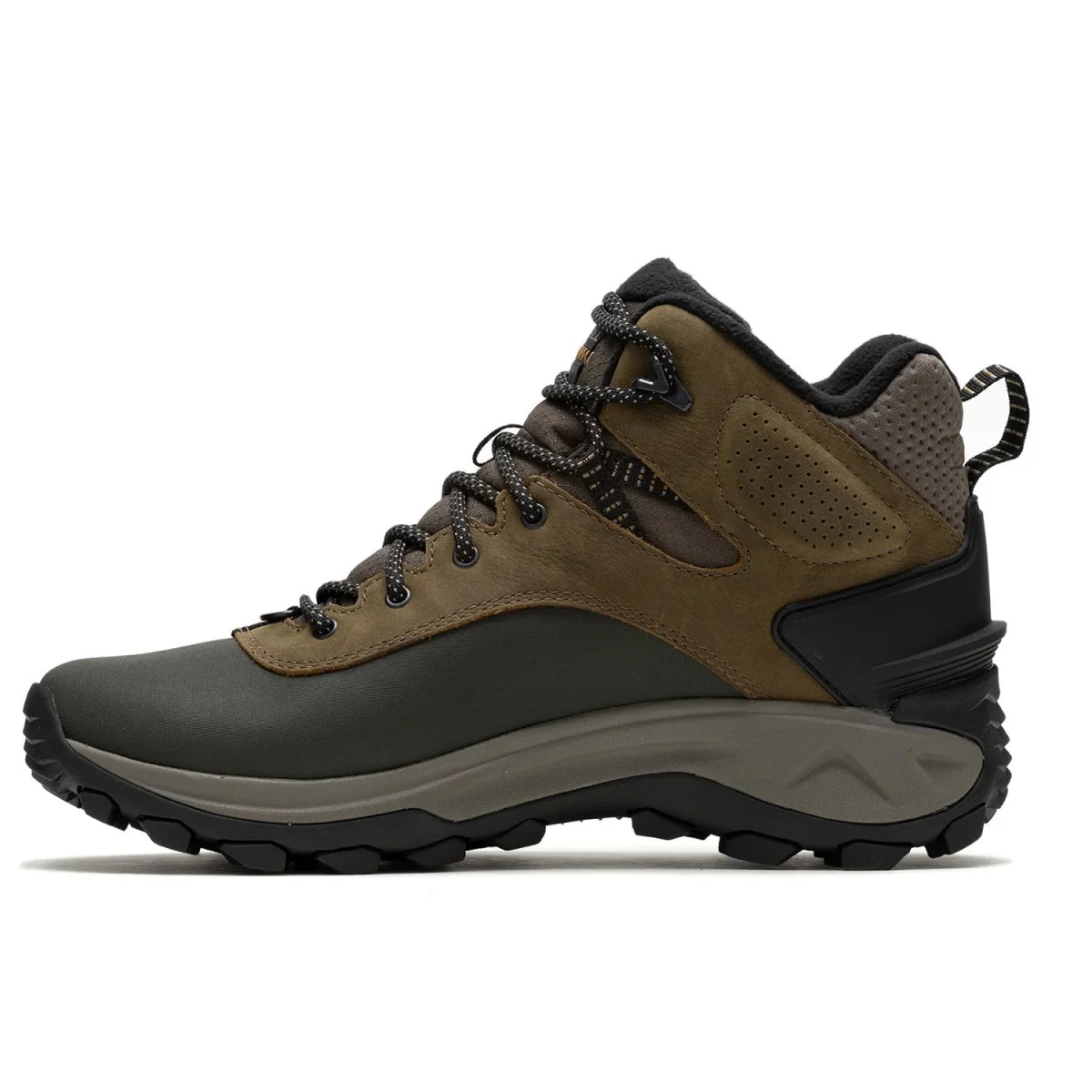 - Suela exterior de goma adherente Merrell, diseñada para el invierno, optimiza la tracción en superficies con climas fríos