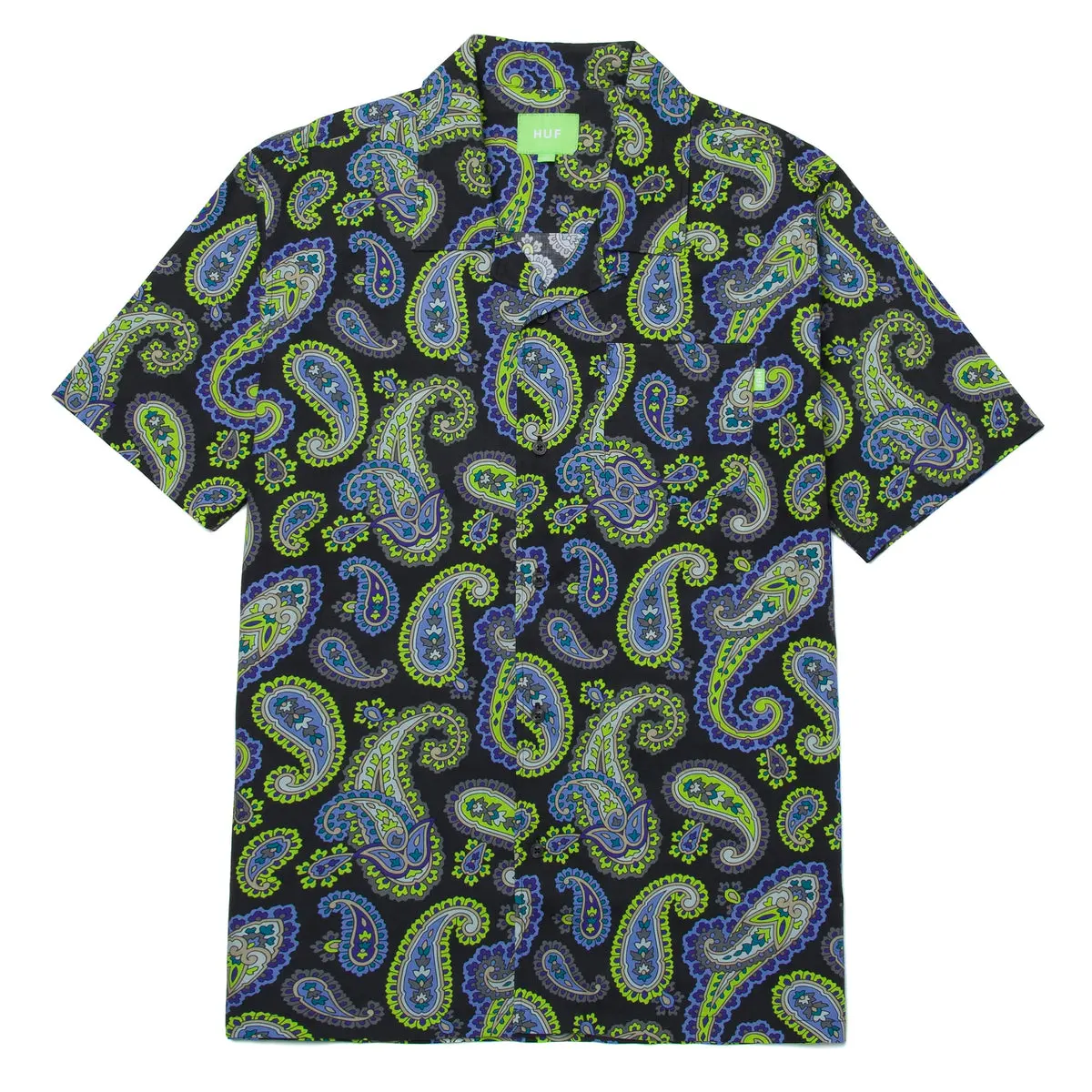 La camiseta tejida de manga corta Paisley está confeccionada con popelina de algodón transpirable y presenta un estampado de cachemira por toda la prenda para darle un toque bohemio. Un guiño a los botones de vacaciones vintage, esta lujosa camisa de resort está rematada con un cuello de campamento casual y está terminada con un bolsillo en el lado izquierdo del pecho.