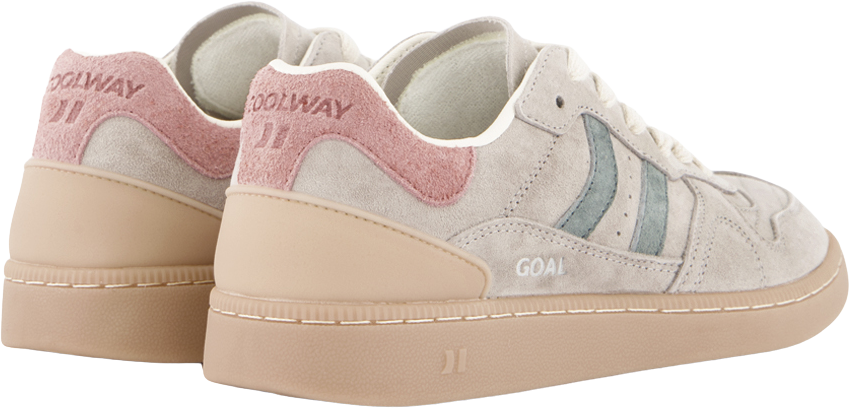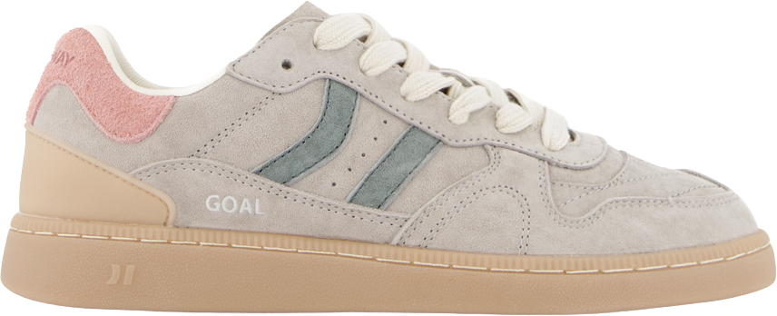 Zapatilla deportiva de serraje con detalles en contraste de color. Lengüeta de piel y preformada con un acolchado figurado. Vistas del forro en piel. Cordones planos de algodón en dos tonos intercambiables. Cuello ligeramente acolchado. La parte delantera lleva un refuerzo de pespuntes. Suela flexible de goma/caucho que aporta durabilidad y agarre. Cuenta con el nombre del modelo “GOAL” en el lateral.