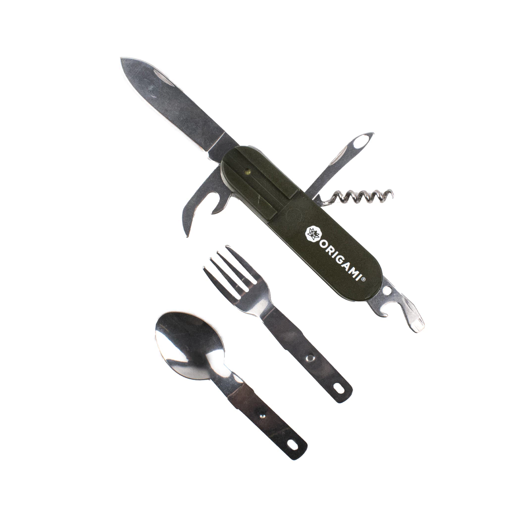Funciones multifuncionales para cada necesidad: – Navaja afilada para cortes precisos – Abrelatas para tus conservas favoritas – Cuchara y tenedor para comer con comodidad – Destapador para refrescos y cervezas – Destornillador para arreglos rápidos – Sacacorchos para tus momentos de relajación