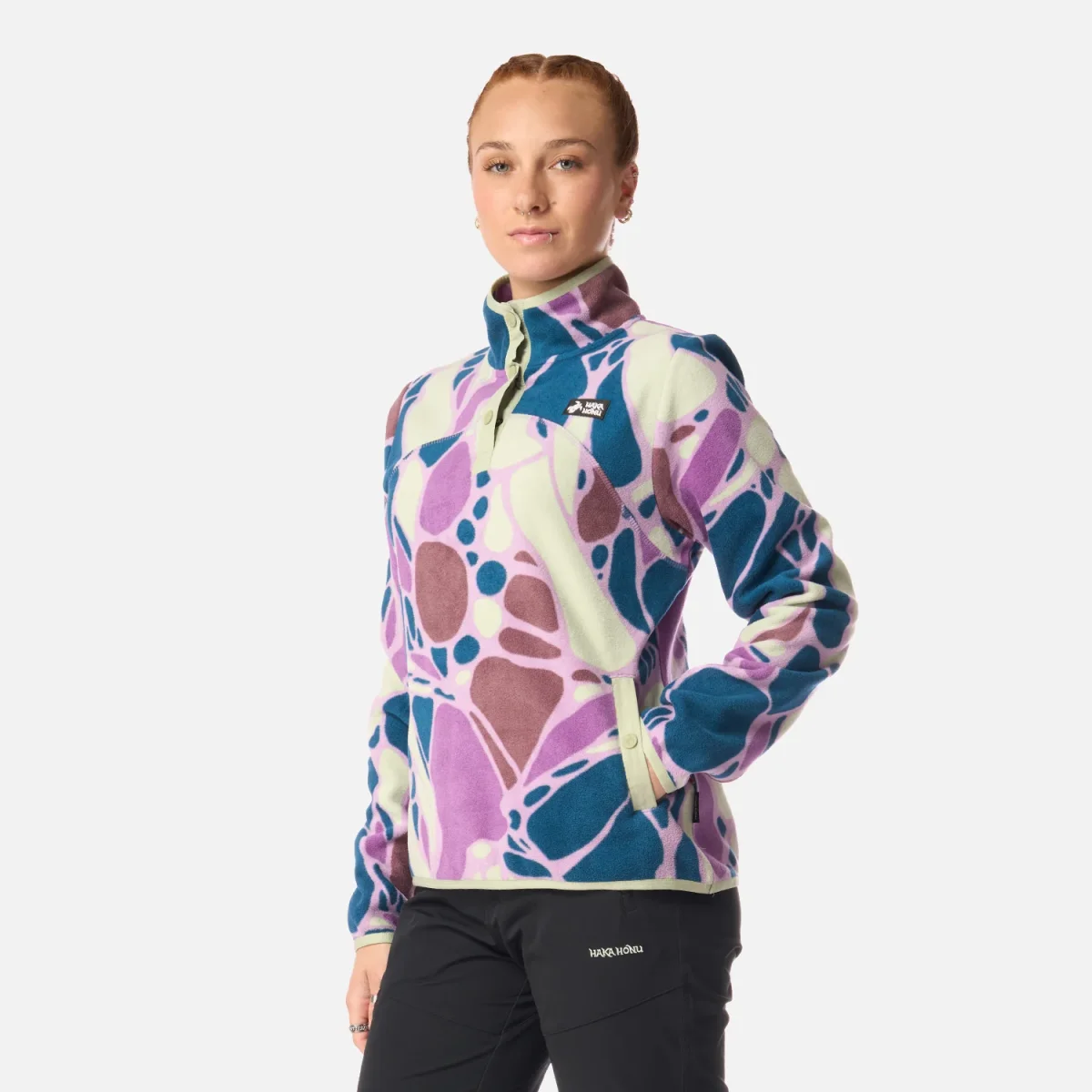 Polerón de polar reciclado, Tratamiento antipilling, Elástico en basta para mejor calce, Ajuste en puños con elástico, Tapeta con broches a la vista, Bolsillo de costados con tapeta, Fit regular