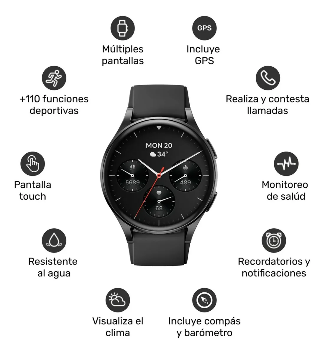 • +110 modos deportivos integrados, natacion, running, trecking, padel, etc.